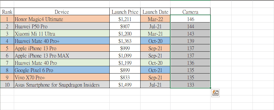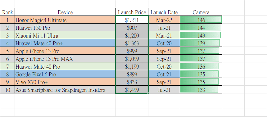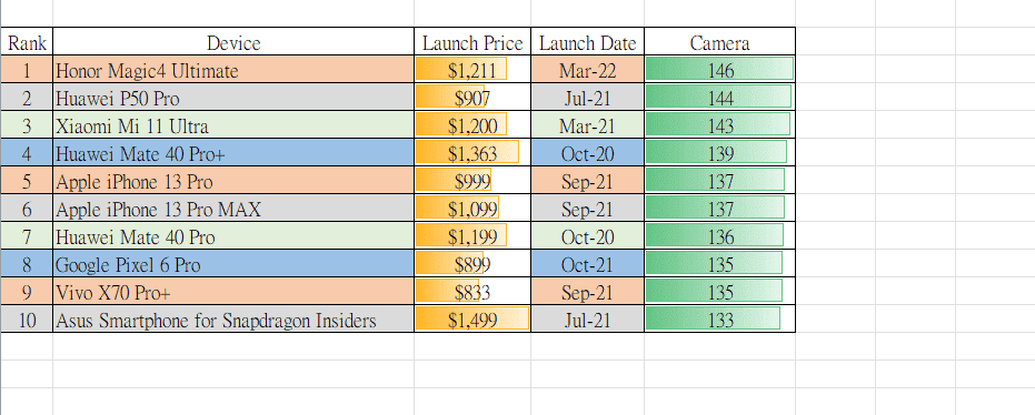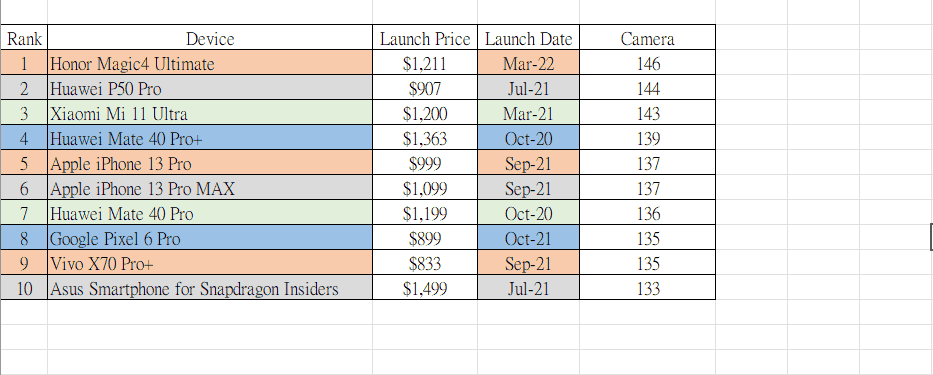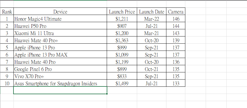 我這邊的資料採用手機的拍照評比網站(DXOMARK)內容,有興趣的人可以參考看看