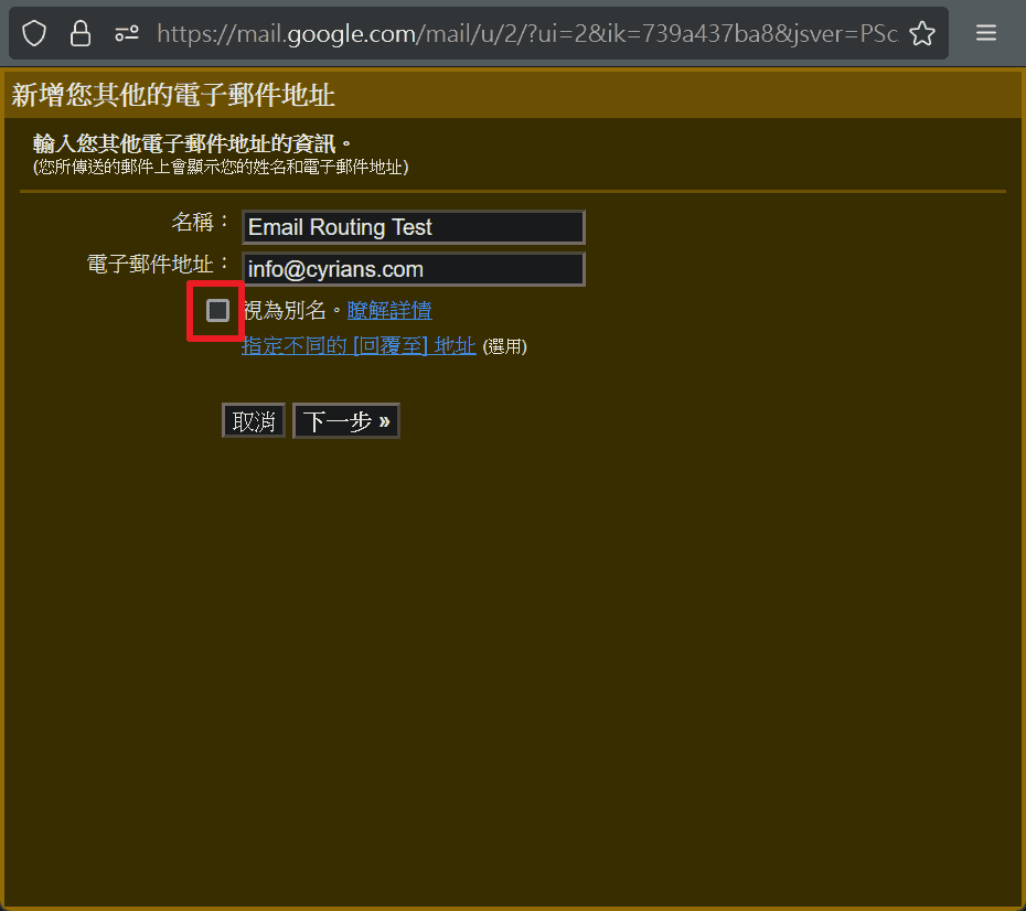 以上是利用Cloudflare的電子郵件路由(Email Routing)功能,使Gmail可以寄送自我網域的郵件,希望能夠幫到你