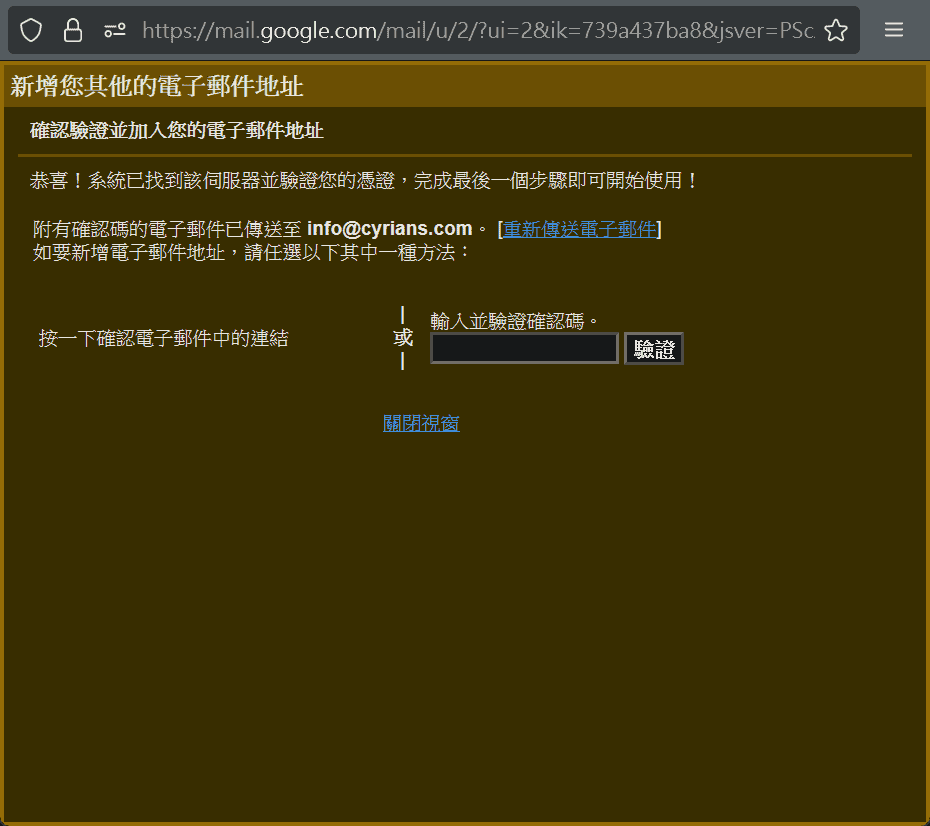 總之再度到自己Gmail信箱確認郵件