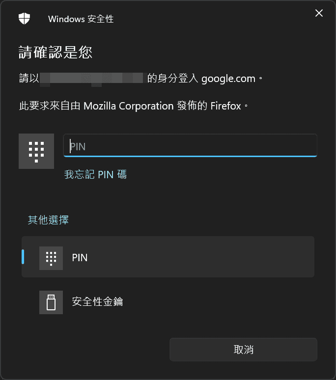 由於我有開啟Google的Passkey功能,所以我這邊是要輸入登入的方式